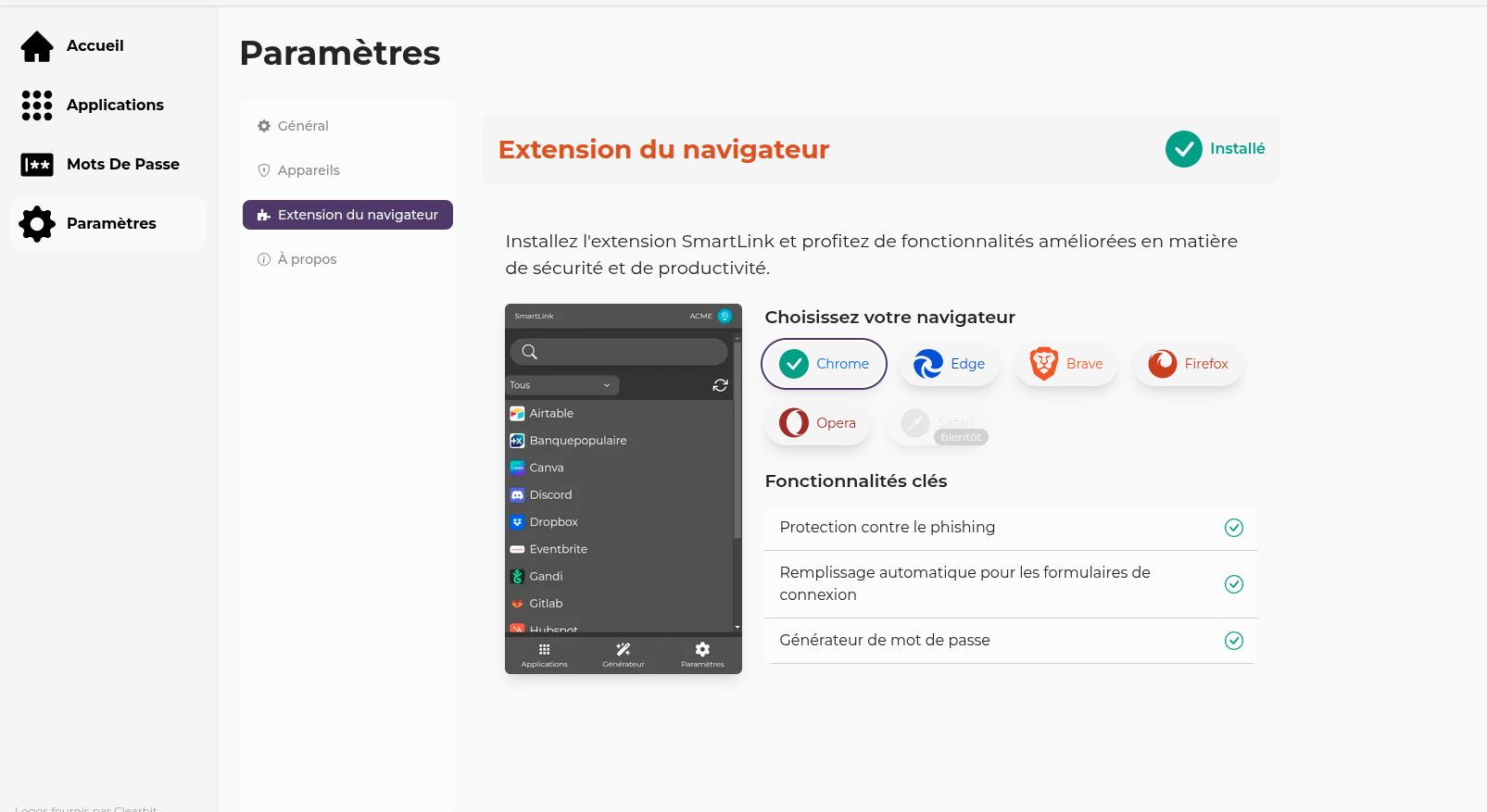 Accédez à vos paramètres généraux, vos identités, installez l'extension SmartLink sur votre navigateur et plus, depuis le nouvel onglet "Paramètres" !