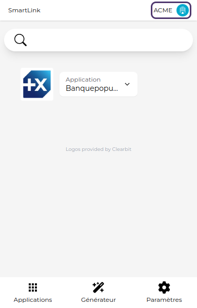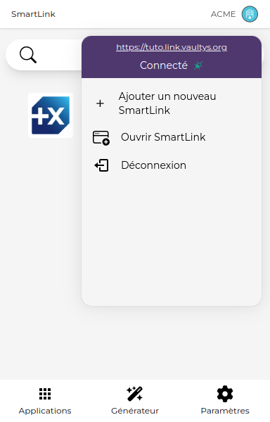 En ouvrant le menu, vous retrouvez la liste de vos SmartLinks. Cliquez sur l'un deux pour changer de SmartLink courant.