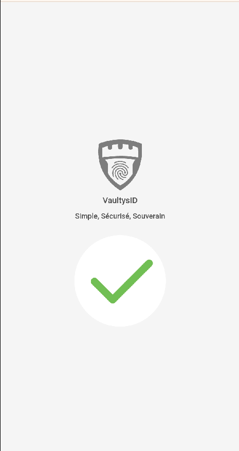 Sur votre téléphone, dans la version test de VaultysID, appuyez sur le bouton Scan en bas de la page