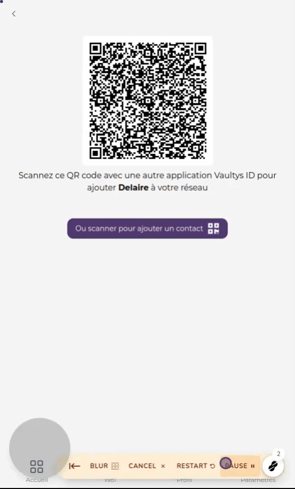 Maintenant votre contact peut scanner votre QR code pour vous ajouter, ou cliquez sur le bouton pour scanner son QR code.