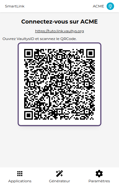 Si vous avez choisis la première option, scannez le QR code avec VaultysID pour connecter votre extension à SmartLink.
